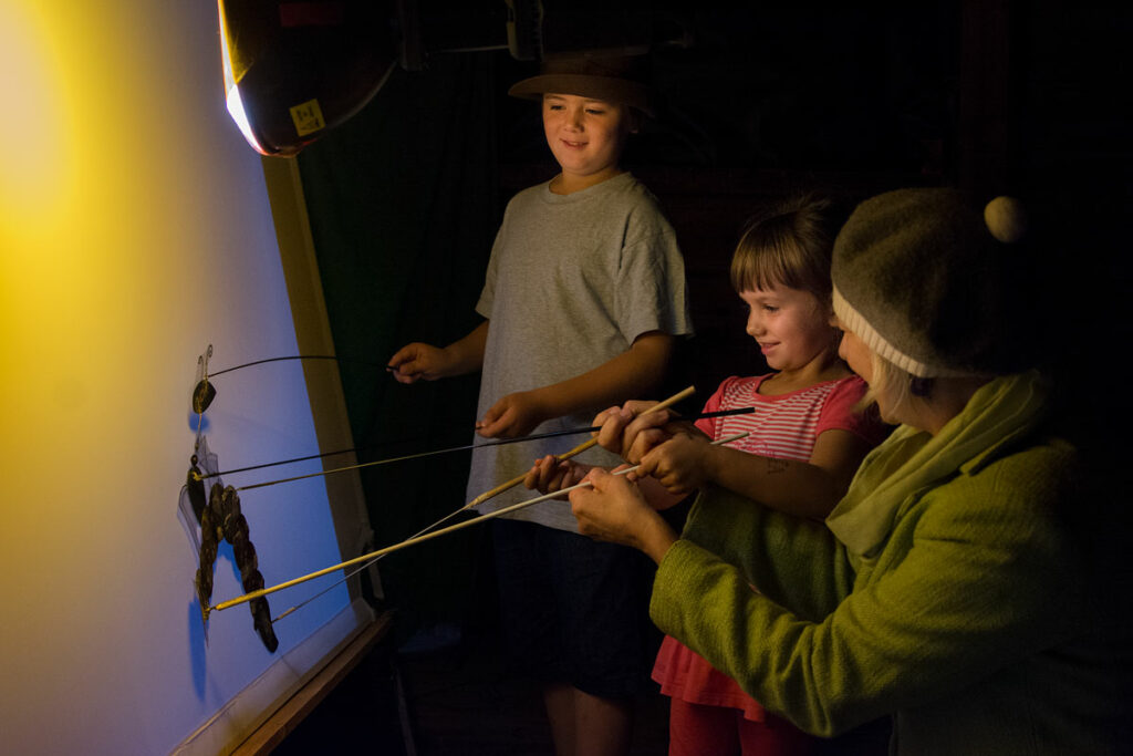 Efter föreställningen får barnen prova på att spela med dockorna bakom rydån.